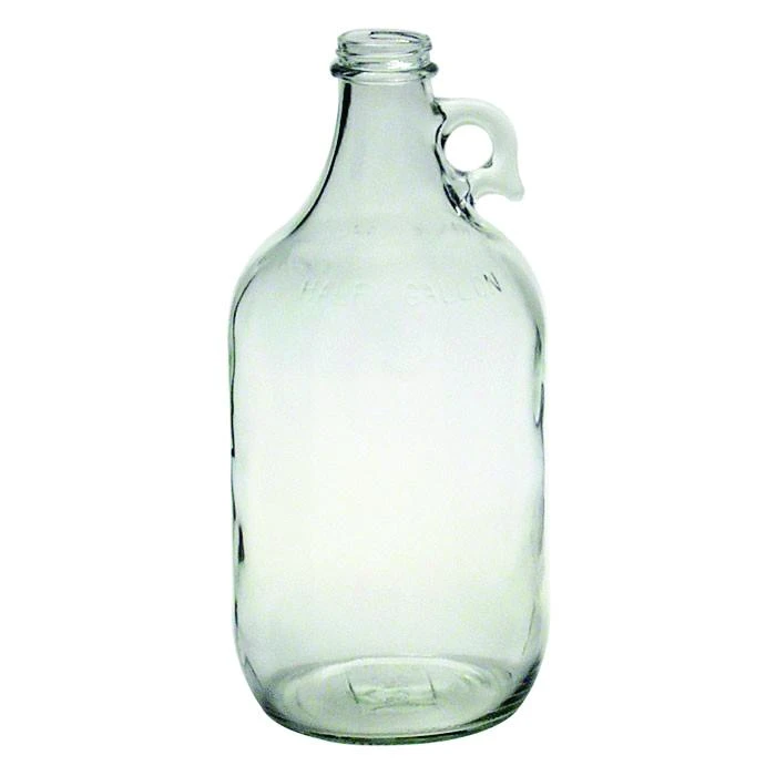 Individual 1/2 gallon glass screw-top jug. Seal with a #6 drilled stopper, #6 solid stopper, or a 38mm screw cap, sold separately. Not rated for pressure, do not use for carbonated beverages.