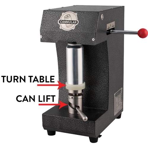 The Cannular’s table spacer is specifically designed to work with 500ml (16.9 oz) Can Fresh aluminum cans. 330ml (11.1 oz) Can Fresh cans are also available, but you will need the correct 330ml table spacer to use them with the seamer. We have tested standard 202 cans and have been able to achieve good seals with proper adjustments. It is necessary to adjust the table height to ensure you have the appropriate amount of pressure applied when the can lift is raised.