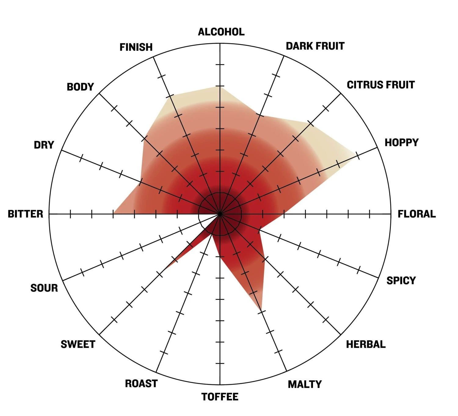 - Aroma: Faint bready malt notes overshadowed by hop aromas of citrus, tropical fruit, pear, and subdued resinous pine.