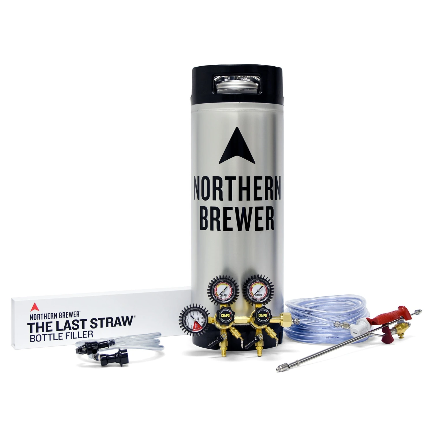 This system is the fastest, hassle-free way to keg and serve with ease. The Home Brew Keg & Bottling System is convenient, sets up quick, and helps you serve better beer. The included Cornelius Ball-Lock keg is easy to disassemble for cleaning and has replaceable seals. The fully-assembled tap lines snap right onto the keg. Best of all, it takes just a swish of sanitizer to prep your keg for the next batch. Don’t wait around for your beer to bottle condition. Add in the CO2 tank of your choice (not included) and you can enjoy your brew sooner, carbonating beer in 1-2 days instead of the standard 2-4 weeks in bottles. Perfect addition for an at-home kegerator kit!