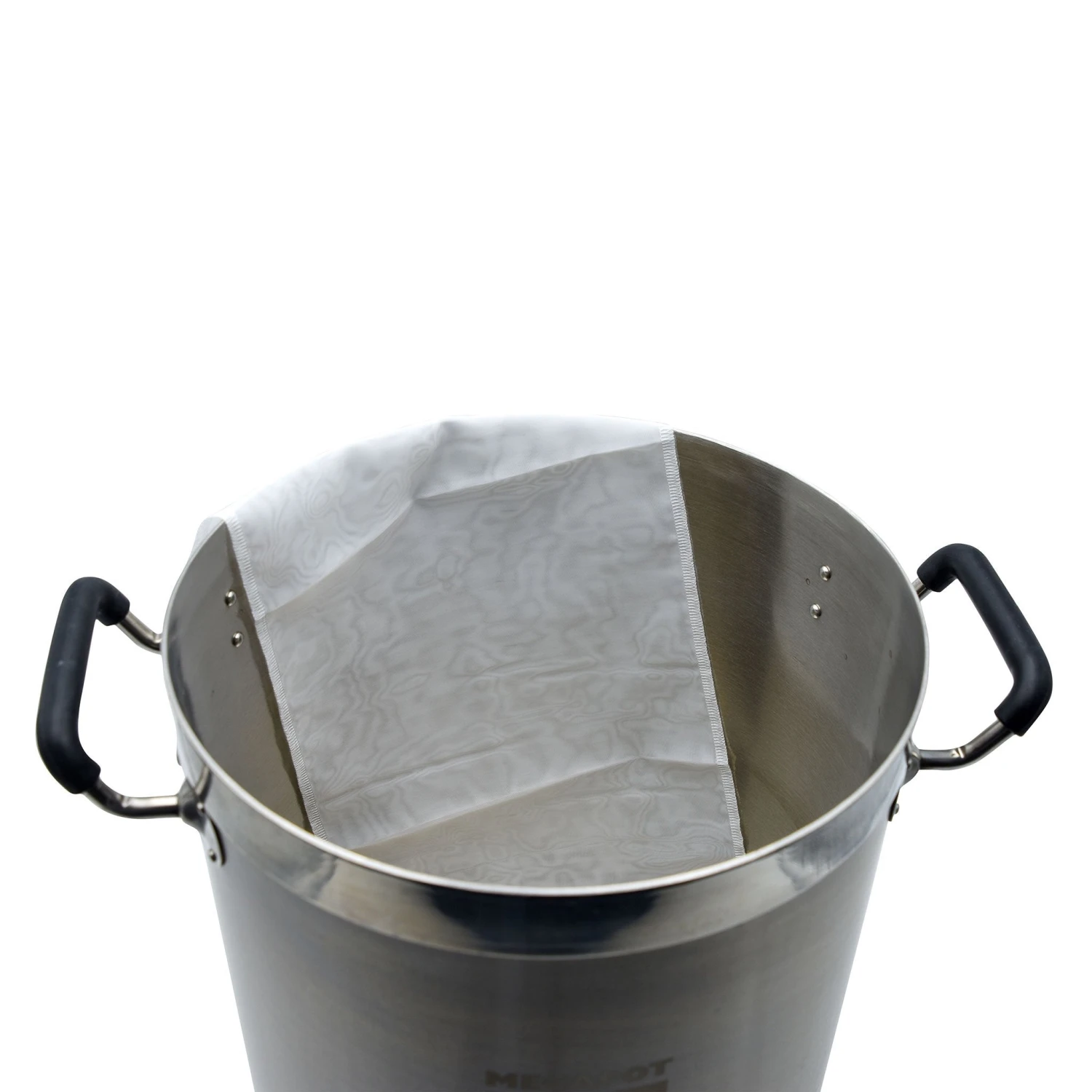 Use this hop filter bag during your boil to keep your hops from getting into your primary fermenter. The tightly woven polyester fibers stand up to boiling temps, keep pellet hop particles out of the kettle, and also allow ample flow of wort through the bag to achieve high hop utilization.