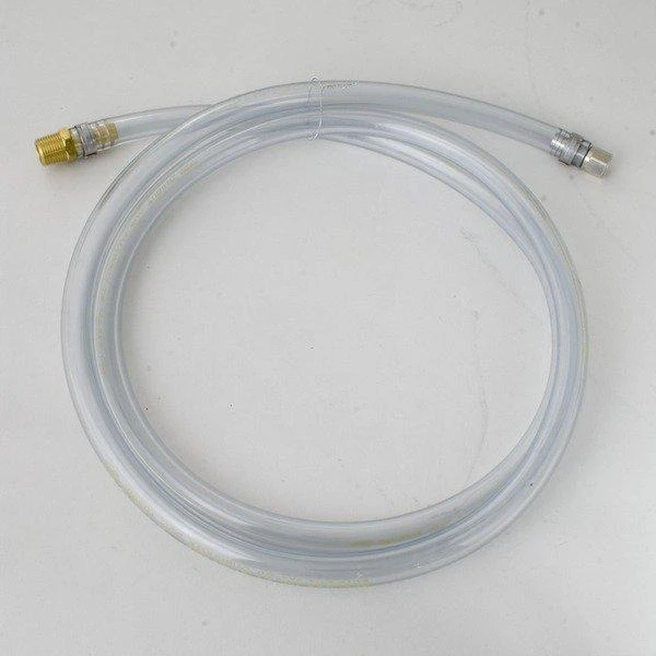 Use two of these to install a cartridge filter housing (#K130) inline between two kegs for filtering beer. 3/8″ MPT-to-barb fitting on one end and a 1/4″ barbed swivel nut on the other to connect to an MFL soda keg disconnect (disconnect not included!).