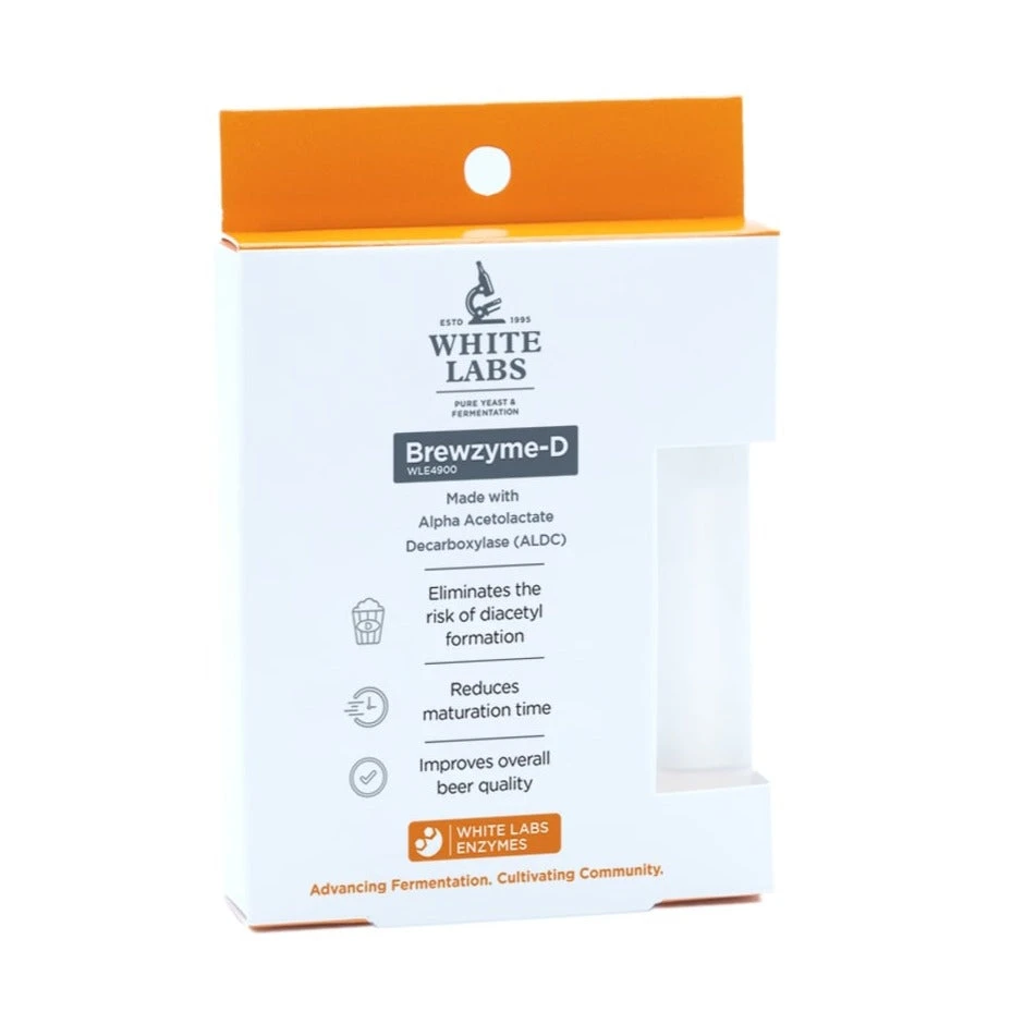 Eliminate the risk of diacetyl formation in your beer with Brewzyme D. Adding Brewzyme-D with your yeast pitch results in the decarboxylation of alpha acetolactate to acetoin. Breaking down the precursor to diacetyl during fermentation prevents diacetyl from forming, reducing maturation time and improving overall beer quality. Brewzyme-D can also prevent hop creep when added during dry hopping in secondary. Made with Alpha Acetolactate Decarboxylase (ALDC).